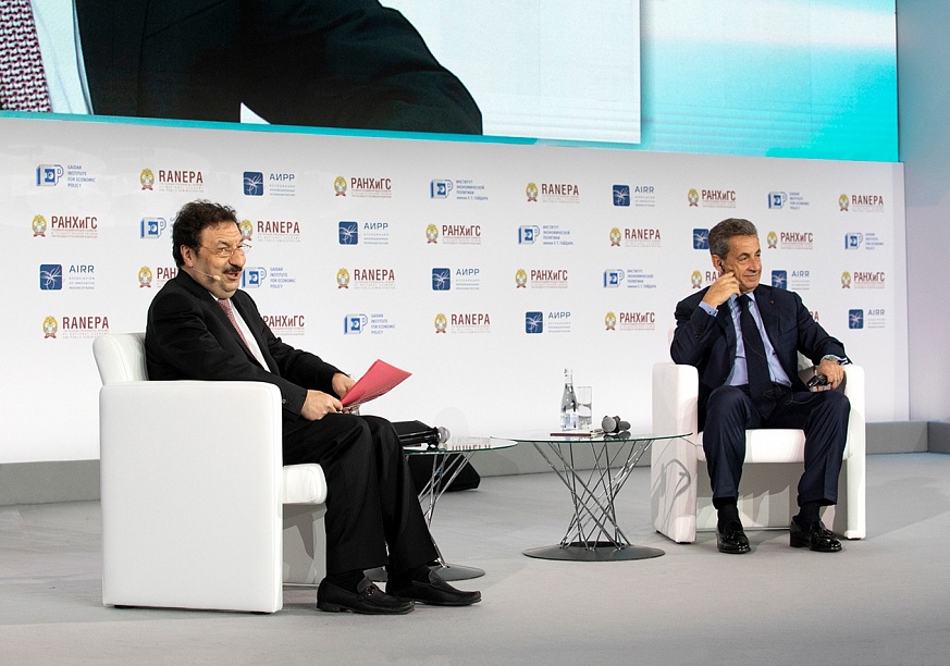 Участниками открытого диалога «Глобальная повестка: вызовы, возможности, риски» стали ректор РАНХиГС Владимир Мау и президент Франции в 2007–2012 годах Николя Саркози. Обсудили ключевые тренды и вызовы наступающего десятилетия - для мира и для Европы. Были рассмотрены вызовы, возможности и риски глобальной повестки.